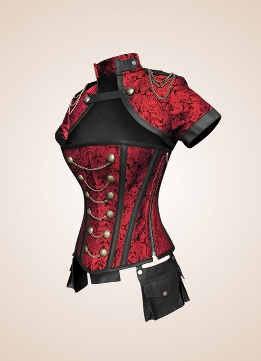 • Asian Military Steampunk Corset Red / XL asian-military-steampunk-corset-red