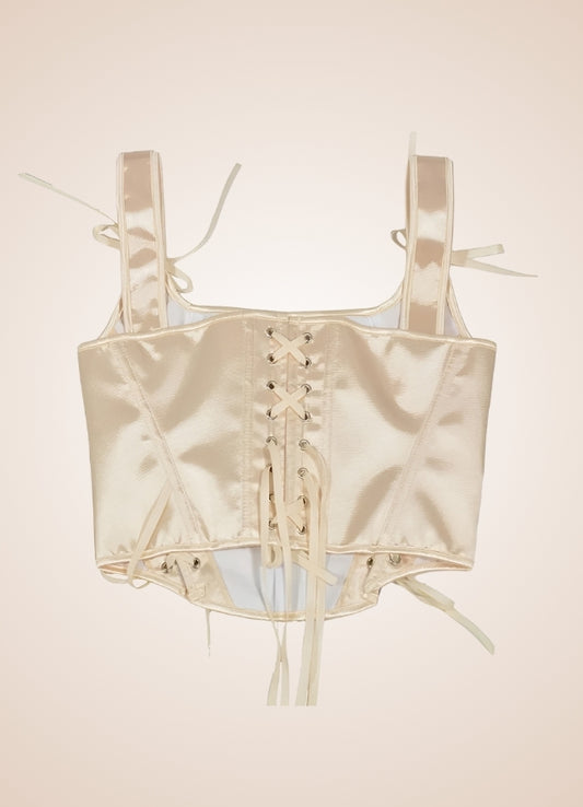 Beigefarbenes Steampunk-Mittelalter-Spitzenkorsett