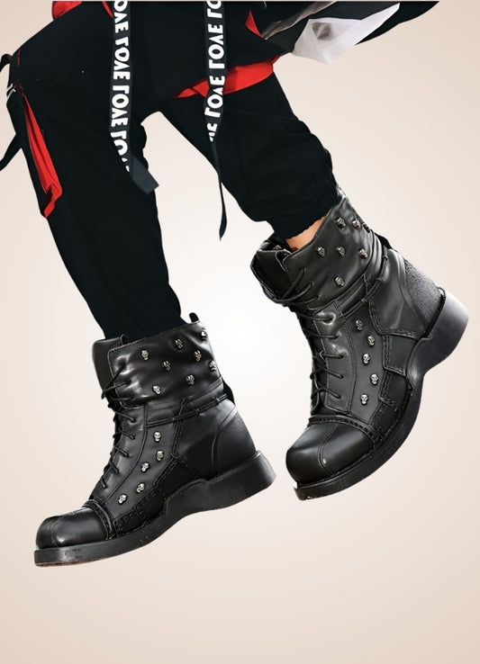 Schwarze Gothic-Schleifenstiefel